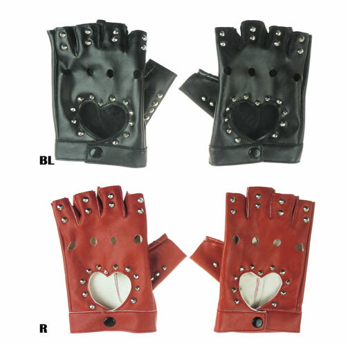 スタッズ 付き ハート抜き 指なし手袋フィンガーレス グローブ レザー レディース 手袋 指なし 指無し 指切りイベント コンテスト ダンス ヒップホップ 余興発表会 舞台 衣装 コスプレ コスチューム フェイク レザーキッズ 子供 ジュニア