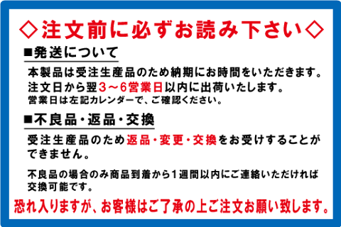 受注後の生産の為、出荷に3〜6営業日かかります。