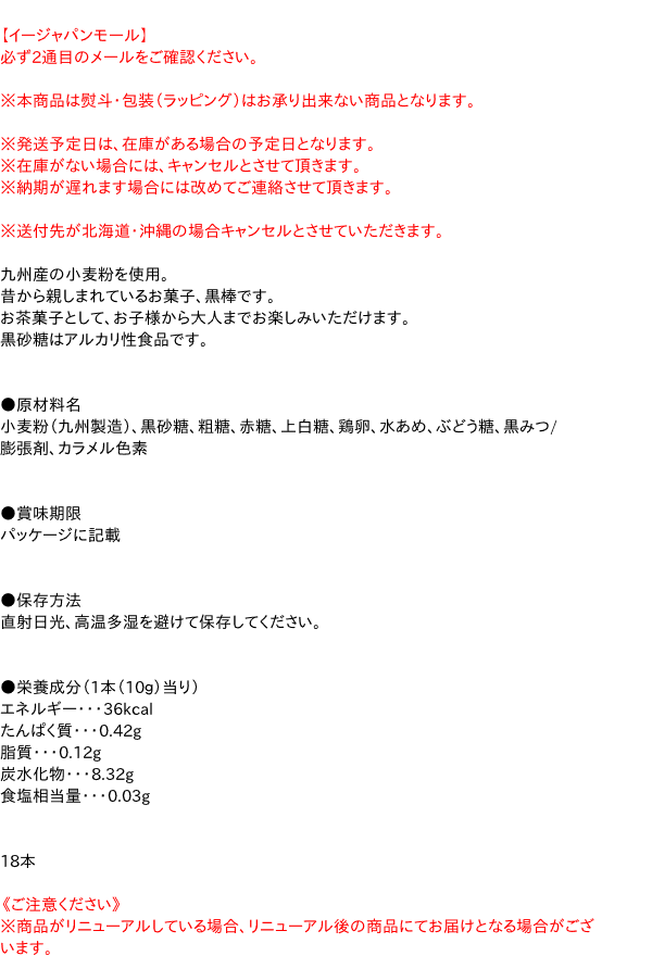トリオ食品 菓子づくし九州黒棒18本 ×12個 はコチラ >>【イージャパンショッピングモール】内のみのお買い物は、送料一律でどれだけ買っても同梱する事が出来ます。