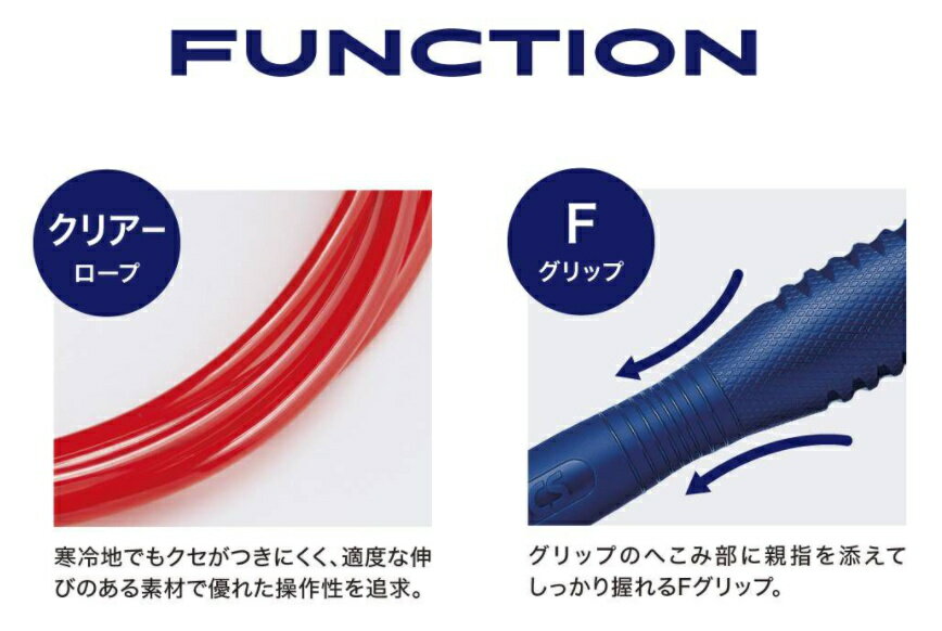 ・寒冷地でもクセがつきにくく、手首のアクションを伝えやすいクリアーロープ。
