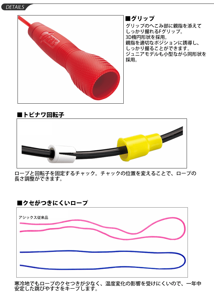 ※メーカー希望小売価格はメーカーサイトに基づいて掲載しています (記載価格が税抜き価格になっている場合もございます)【アシックス asics ジュニア なわとび】 —JNF日本なわとび協議連盟公認商品— ◆その他のアシックスのなわとびはこちら!→ [asics とびなわ] ◆ 商 品 説 明 ◆ ★