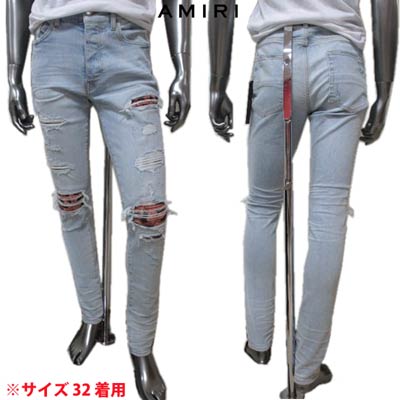アミリ AMIRI メンズ パンツ ボトムス ロゴ クラッシュ加工・膝部分ボタニカル柄・ボタン/バックポケットロゴ刻印・ストレッチスキニーパンツ ブルー F0M01164SD ILS (R165000) 02A 2020年秋冬新作【送料無料】 【smtb-TK】