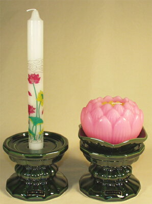<セット内容>蓮玉ローソク2個 30号蓮花ローソク2本 陶製燭台2台。